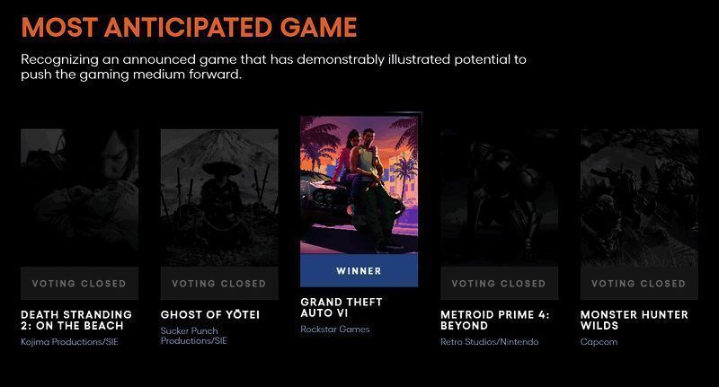 其他提名:《死亡搁浅2》《羊蹄山之魂》《银河战士Prime 4》《怪物猎人:荒野》