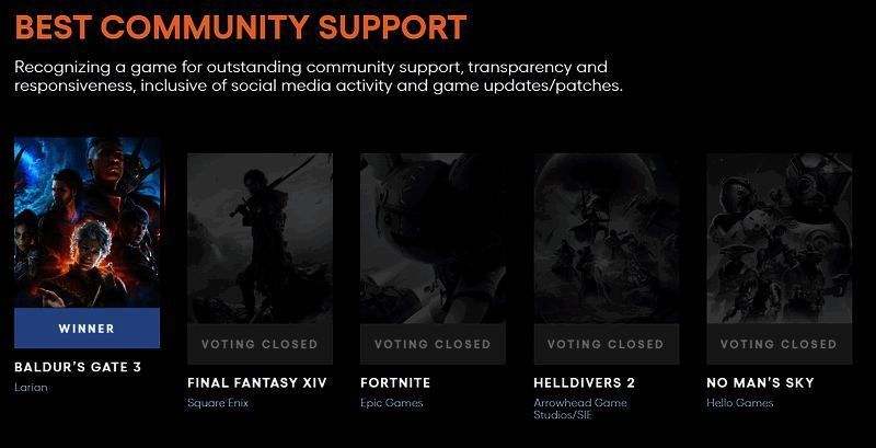其他提名:《使命召唤21:黑色行动6》《暗黑破坏神4》《龙腾世纪:影障守护者》《星球大战:亡命之徒》