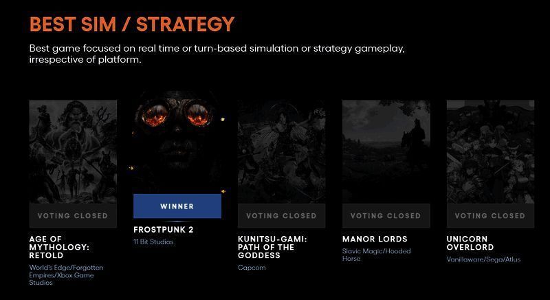 其他提名:《神话时代:重制版》《祇:女神之道》《庄园领主》《圣兽之王》