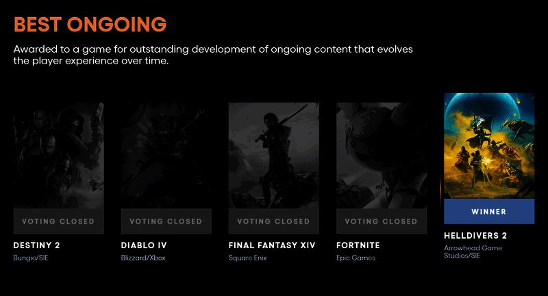 其他提名:《命运2》《暗黑破坏神4》《最终幻想14》《堡垒之夜》