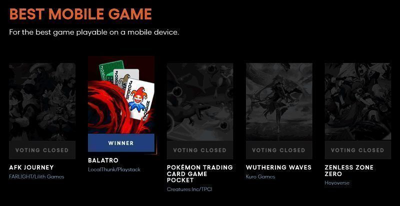 其他提名:《剑与远征:启程》《宝可梦TCG Pocket》《鸣潮》《绝区零》