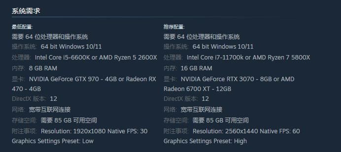显卡: NVIDIA GeForce RTX 3070 - 8GB or AMD Radeon 6700 XT - 12GB