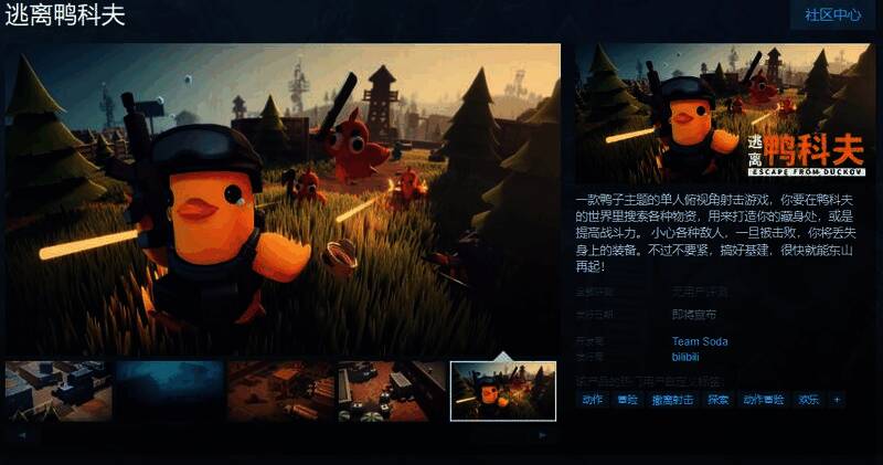 今日(12月12日),鸭子主题的单人俯视角射击游戏《逃离鸭科夫》Steam页面上线,游戏支持简繁体中文,发售日待定,感兴趣的玩家可以点击此处进入商店页面。