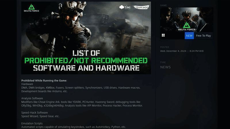 此前,有一些英文圈玩家发现,在《三角洲行动》的可能导致封禁的硬件和软件列表中,包括了“USBDrive”,也就是我们常说的 U 盘/ USB 储存设备。这导致了许多用户的不理解,认为游戏的反作弊系统管的有点太宽了。然而目前游戏开发团队澄清说,这只是一个“翻译错误”。