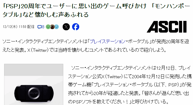 12月12日今天,是索尼互娱一代经典掌机PSP的诞生纪念日,官方发文祝贺,引来大批老玩家感慨,其中什么游戏最难忘,呼声最高的就是《怪物猎人P》。