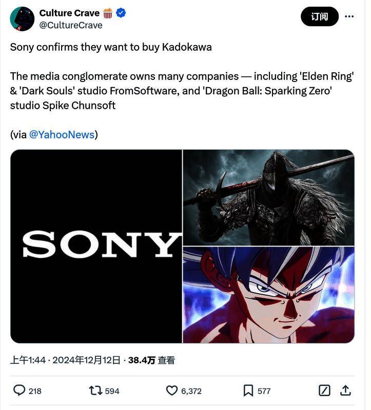 索尼收购FromSoftware母公司角川集团看起来越来越真了。继角川表示已经收到索尼方面的收购意向书后,最近索尼自己也向媒体确认对收购角川“感兴趣”。