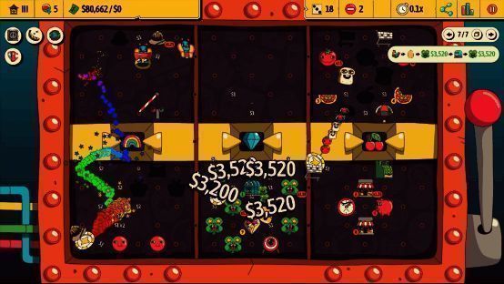 · 沙盒玩法:在实验室(Laballatory)自由探索!在游戏前验证策略,制作有趣的构筑,或打造一块“破坏天际”的弹珠板。玩家还能与好友分享弹珠板,比拼谁能赚得更多财富!
