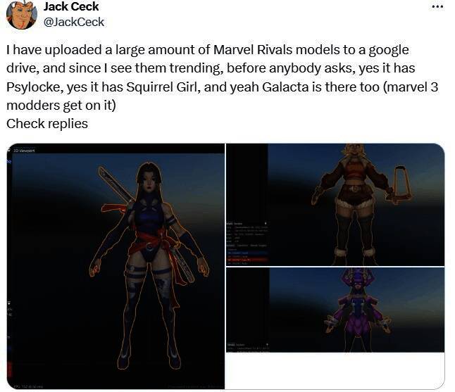 《漫威争锋》推出后便受到玩家好评,不仅是因为游戏玩法,其角色设计也功不可没。特别是女性角色,忠实再现了美漫原作的身材,每位角色都拥有极高美貌与魅力。有数据挖掘者获得角色3D模型后,惊讶发现这些模型比《守望先锋》精致。该发现也让许多玩家对未来绅士作品更加期待。