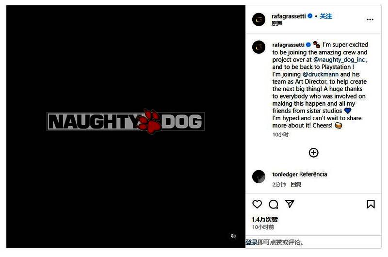 格拉塞蒂表示:“我非常高兴能够加入顽皮狗的优秀团队和项目,并重返PlayStation。我将以艺术总监的身份加入顽皮狗老板尼尔·德鲁克曼和他的团队,帮助创造下一个大作!非常感谢所有参与实现这一目标的人以及来自姐妹工作室的所有朋友。我很兴奋,迫不及待地想分享更多信息!干杯!”