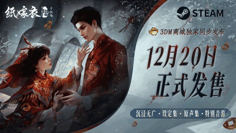 国内知名中式民俗恐怖解谜游戏工作室“纸嫁衣”,近日宣布他们旗下著名游戏系列“纸嫁衣”的第六部作品《纸嫁衣6千秋魇》的买断制PC横版,将在12月20日于Steam上正式发售,3DM商城也将会独家同步发布。
