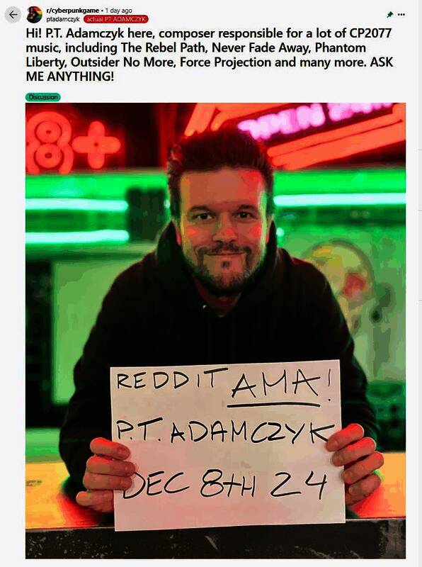 近日为《赛博朋克2077》创造了武侍乐队的作曲家PT Adamczyk在一篇reddit上的问答贴中,回应了关于武侍乐队的一些相关问题。