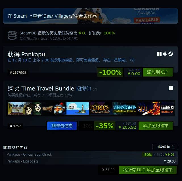 近日《潘卡普:守梦人》已在Steam平台开启限时免费领取活动,将持续到12月19日上午2点,感兴趣的玩家点击主页的添加到库即可拥有本作。