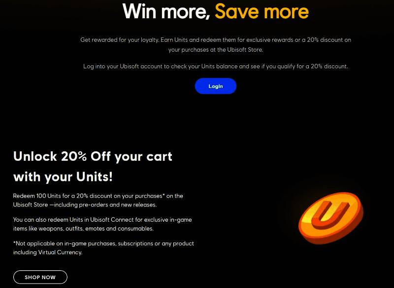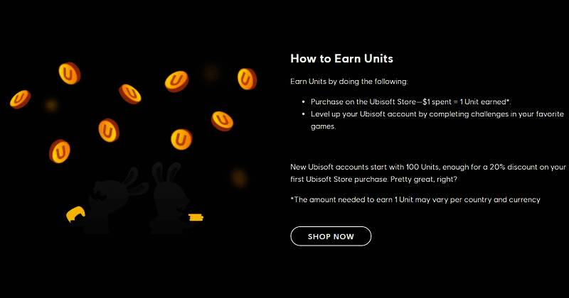 育碧近日在发送给订阅了忠诚度计划的玩家的电子邮件中提到,即日起玩家收集的U点(Units)“也将适用于在育碧商店预购和购买新游戏”上,而100个U点相当于20%的折扣。