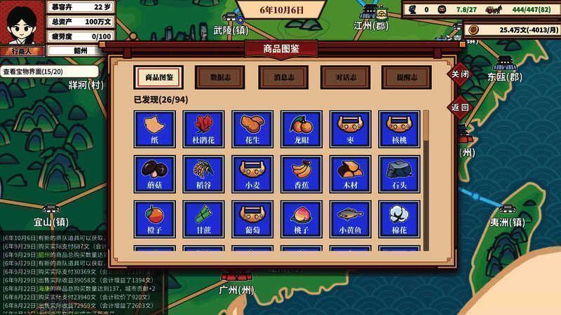本作是一款古代贸易模拟经营游戏,在游戏中,你可以从一无所有到富甲天下。通过商品买卖、精准投资、管理家族、以及各种奇遇,一步步成长为贸易大亨。