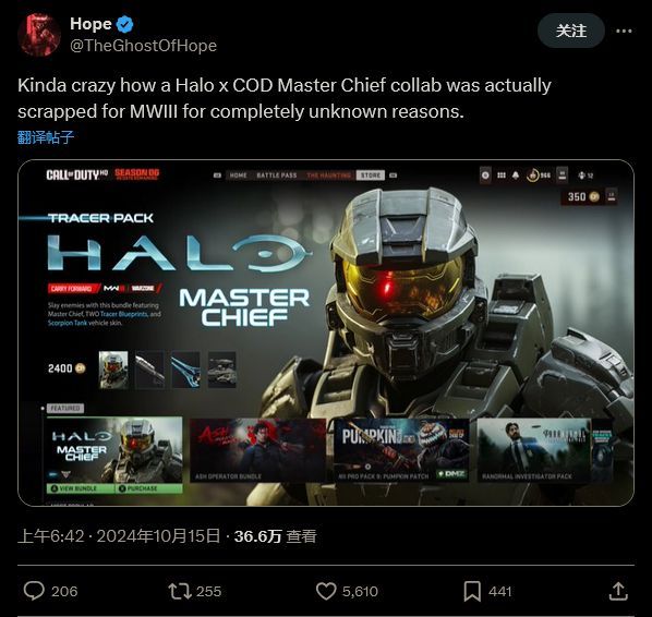 有些人推测在《现代战争3》时期取消的捆绑包可能会在即将推出的《黑色行动6》运营期间发布。《使命召唤:黑色行动6》将于 10 月 25 日发布,且不支持《现代战争3》的皮肤。 考虑到现在《使命召唤》和《光环》都是微软的 IP,这次联动很有可能在未来发生。