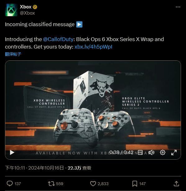 微软日起公开了一系列适用于标准和精英版 Xbox 手柄的《使命召唤:黑色行动6》外壳,以及 Xbox Series X 的主机贴。目前这些产品已通过 Xbox Design Lab 销售,通过该网站,玩家可以对手柄的许多部分,包括扳机和握把进行定制。