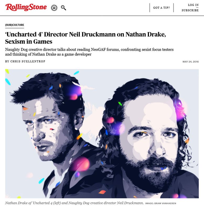 尼尔可能是最早一批在游戏中大力推动 DEI 相关内容的制作人,这份2016 年的报道的主题就是他讨论游戏中的性别歧视问题。他曾公开支持游戏界曾经的 Sweet Baby Inc.——“女权”组织 Feminist Frequency 的创始人阿妮塔·萨卡伊西恩,之后还编写了大受争议的《最后的生还者2》“高尔夫”剧情。