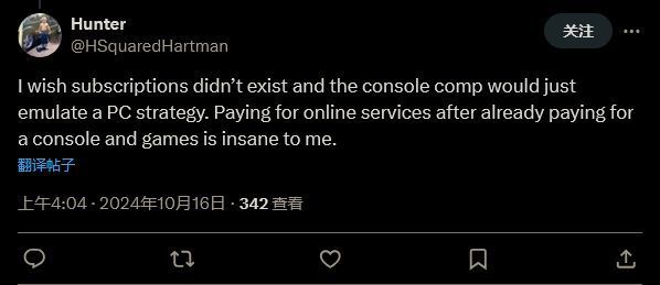 另一位网友表示:“我希望订阅服务本身就不存在,在已经买了游戏主机和游戏之后还要再花钱买联网功能对我来说不可理喻。”
