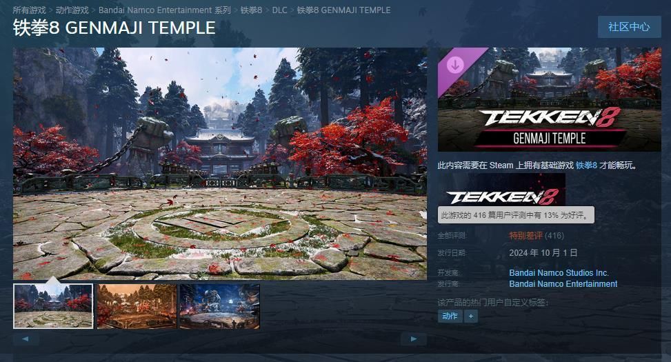 由万代南梦宫打造的3D格斗游戏《铁拳8》在本月初推出了全新付费DLC“GENMAJI TEMPLE”,但由于DLC仅添加了一个战斗场景就标价28元(Steam国区定价)且并未包含在季票、豪华版或终极版中,而遭到玩家的集中差评。
