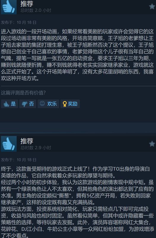 国产互动影游《开局五个亿》于今日在Steam平台正式开售,原价45元,首发价36元促销,截止发稿时,该作在Steam平台好评率为80%。