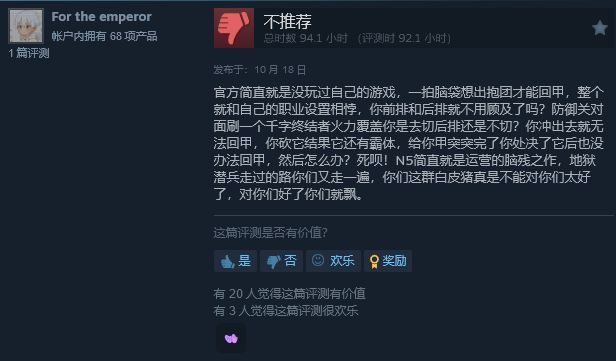 这里提到的前车之鉴就是由 Arrowhead 开发的《绝地潜兵2》。同样是合作 PvE,同样是对抗外星虫子向宇宙散播人类的光辉,《绝地潜兵2》在持续不知悔改的推出多个削弱补丁后,遭到了玩家的狠狠“敲打”,先后多次遭受了“差评轰炸”,终于在最近的两次更新中顺从了玩家一直以来提出的各种补强要求。两款游戏都有着不错的开局,但是在有这种先例的情况下,开发者又要对着 PvE 模式中原本就不平衡的玩家强度砍一刀,而不是让玩家在游戏里获得爽感,这让许多人特别失望,纷纷表示跟谁学不好非得和箭头学。