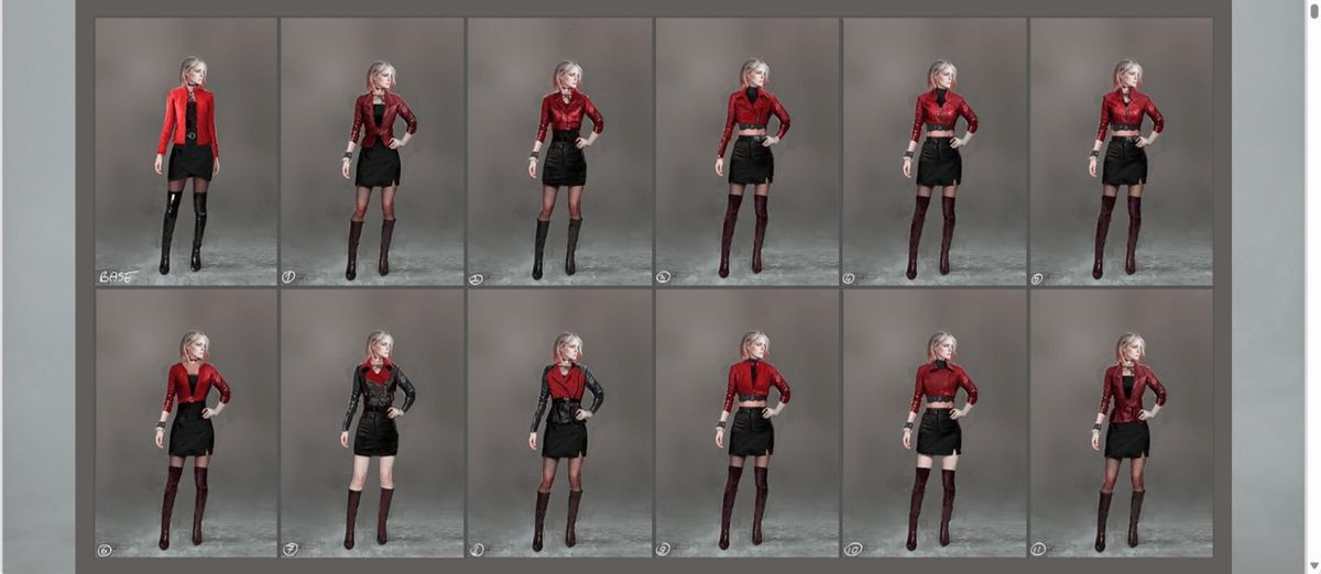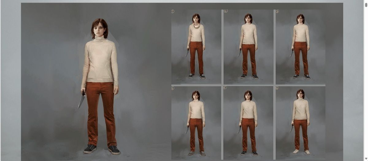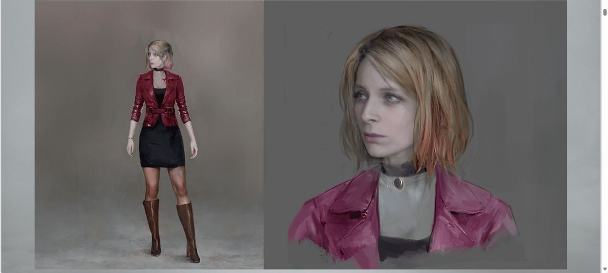 这些詹姆斯、玛丽娅和安吉拉的插图本质上是概念艺术家根据他们对角色的设想所创造的不同版本。每个角色的一个设计最终被确定用于游戏中。如上所示,这些艺术作品包括玛丽娅和安吉拉的服装变化。