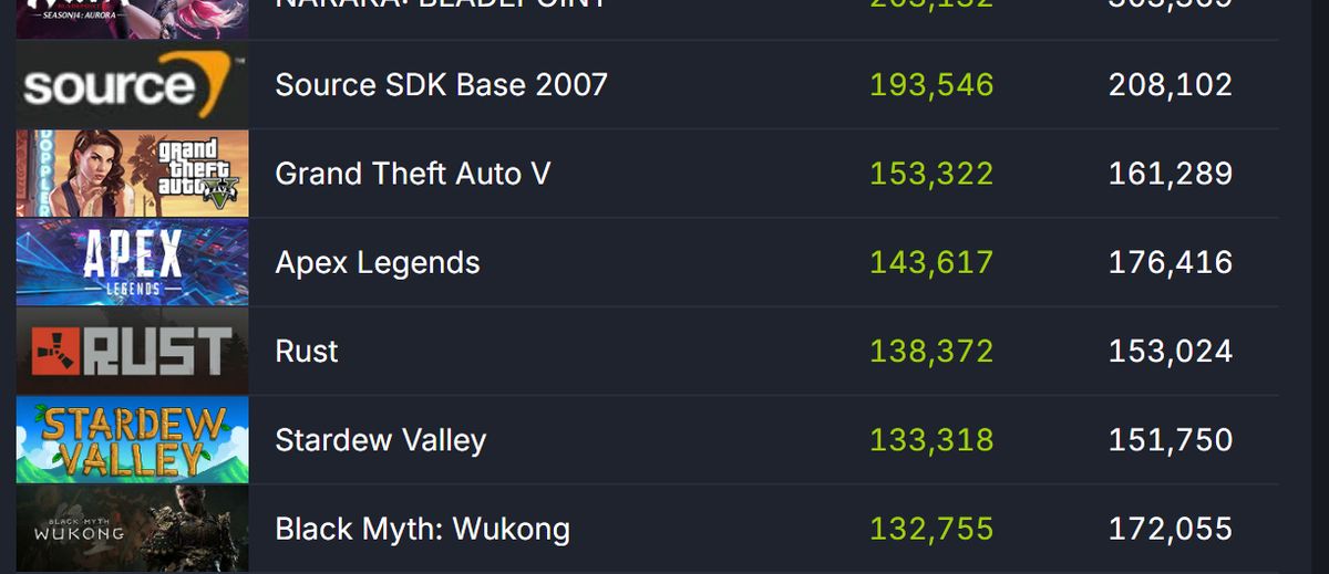 据Steam平台统计的数据显示,目前《黑神话:悟空》有超过13万玩家在线,在人气榜上排12,这对于一款发售两个月的游戏来说已经很不错了。