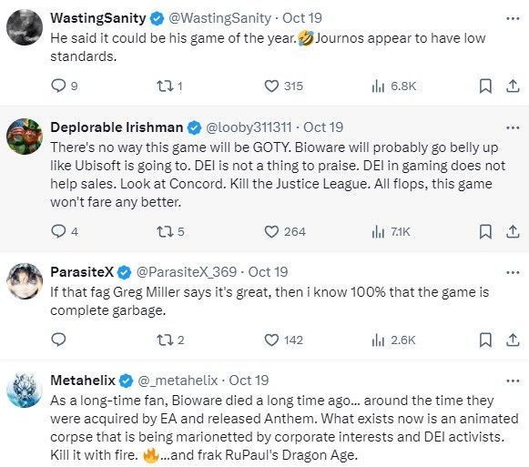评论区有网友表示:“看来他的标准很低,这游戏很容易成为他的年度游戏。”“《龙腾世纪4》不可能成为年度游戏,BioWare可能会像育碧一样陷入困境。游戏中的DEI元素对游戏销售没有一点帮助。”“所有这些觉醒的工作室和游戏都会失败,没人想要它们。”