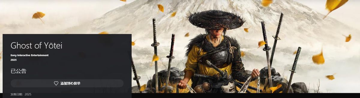 今日(10月23日),《对马岛之魂》续作《羊蹄山之魂》PSN页面公布,公元1603年,羊蹄山麓。草甸、雪原、悄然而至的危险。笃的旅程由此展开。《Ghost of Yōtei》2025年登陆PlayStation 5,感兴趣的玩家可以点击此处进入商店页面。