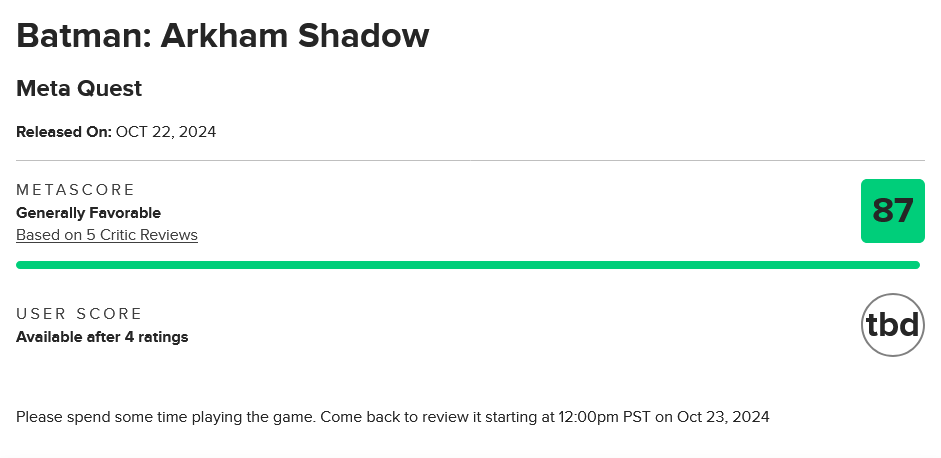 倍受喜爱的《蝙蝠侠:阿卡姆》系列的最新作品是一部 VR 游戏。名为《蝙蝠侠:阿卡姆之影》,游戏已于日前在 Meta Quest 上发布,并且成为了许多系列粉丝的意外之喜:虽然它是一款仅限 VR 的游戏,一些粉丝甚至将其称为“年度游戏”。