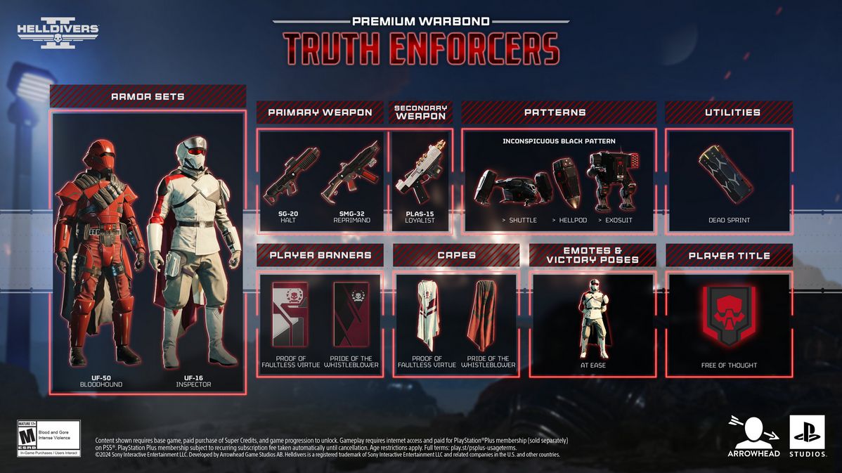 在花费 60 天对玩家的各种痛点进行全力改进后,《绝地潜兵2》即将推出全新的“战争债券”通行证。名为“真理执行者(Truth Enforcer)”,新的通行证将于 10 月31 日推出。