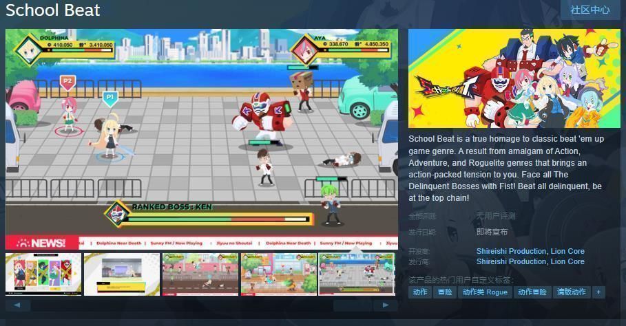 今日(10月26日),清版街机动作游戏《SchoolBeat》Steam页面开放,发行日期待定,暂不支持简体中文,感兴趣的玩家可以点击此处进入商店页面。