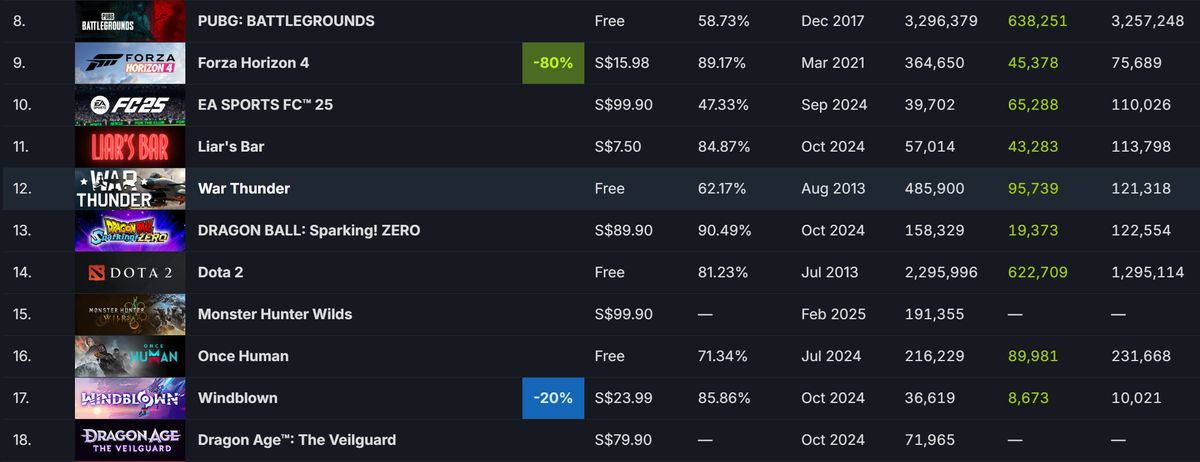 而在Steam热销榜上,《龙腾世纪:影障守护者》的排名比之前进步了许多,但还是没有入围Top 10,目前仅仅18名,不及《怪物猎人:荒野》。