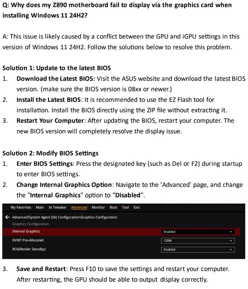 解决方案比较直接:要么在升级系统之前禁用核显,要么升级BIOS。然而对于不熟悉或不愿更新固件或修改BIOS设置的用户来说,这两个方案都不是那么容易动手。