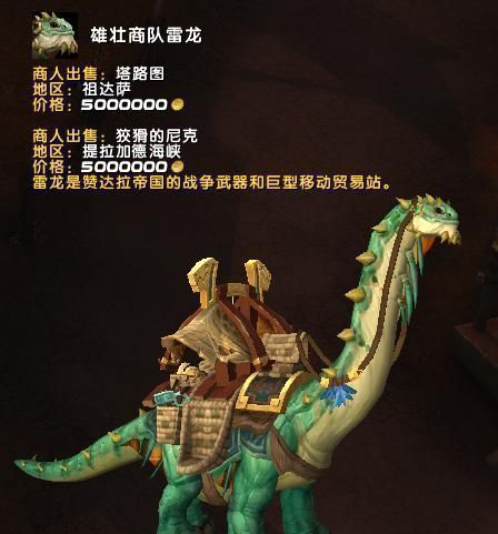 要知道在《魔兽世界》8.0“争霸艾泽拉斯”中,玩家可以花费500万来购买“雄壮商队雷龙”,而该坐骑在9.0版本就绝版,现在玩家只能通过黑市或拍卖行才能购买到该坐骑。
