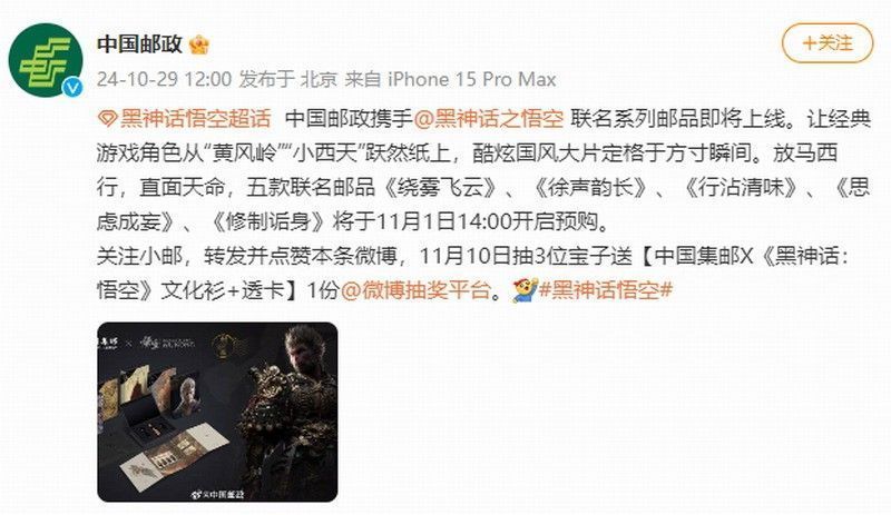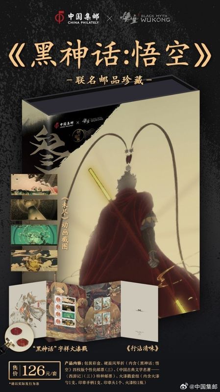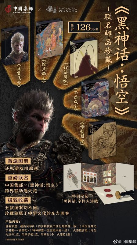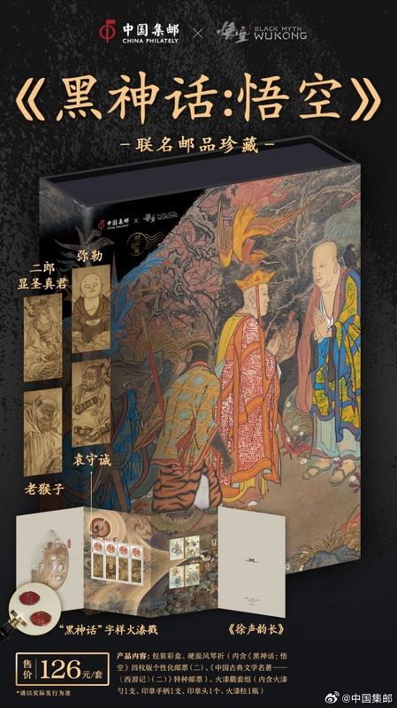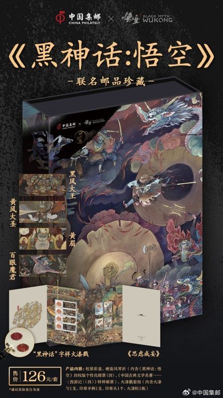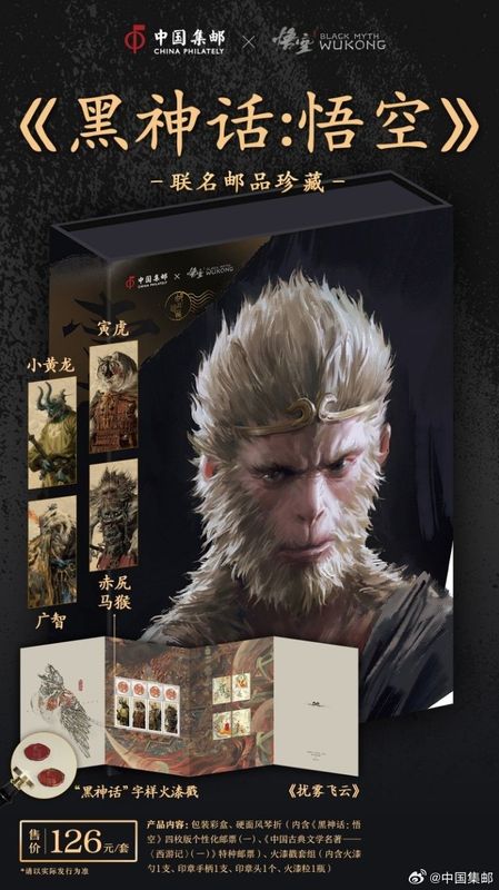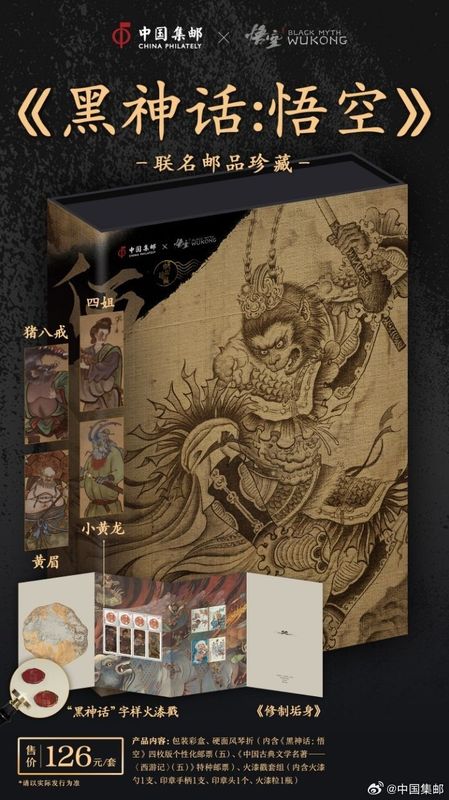 近日中国邮政官方宣布,将与人气游戏《黑神话:悟空》联动,推出联名系列邮品。