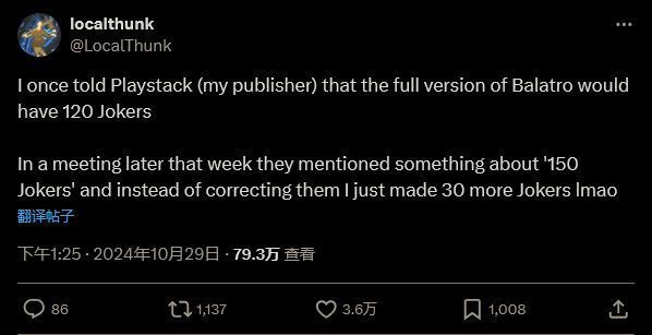 在游戏的宣发中,发行商也会犯一些笔误,特别是那些比较小的发行公司。《小丑牌》的开发者 LocalThunk 就在社交媒体上透露了一条相关的趣闻:开发者在为这款热门卡牌肉鸽游戏准备宣发工作时也犯了一个小错误,但他并没有去纠正这个错误。