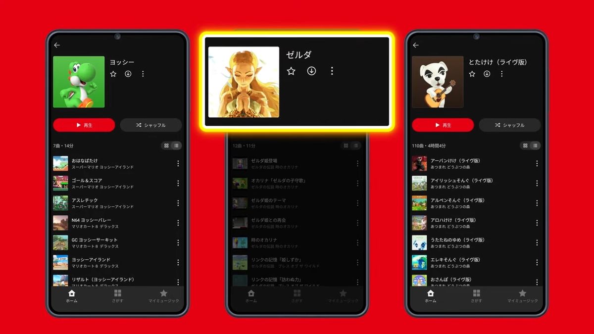Nintendo Music收录了来自《动物森友会》、《塞尔达传说》、《超级马里奥》等众多经典任天堂游戏系列的丰富曲目。 App内设有各种主题歌单,例如以塞尔达公主或耀西为主题的歌单,以及根据游戏开场、Boss战等场景精心策划的歌单,甚至还有根据心情匹配的歌单。 用户还可以自定义歌单,并可过滤特定游戏音乐,避免剧透。 此外,用户还可以延长或循环播放特定曲目。