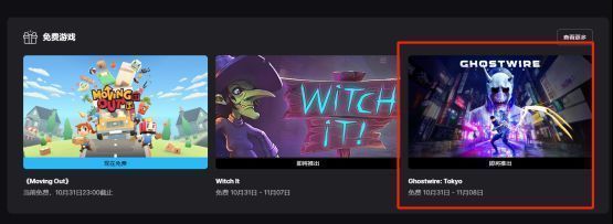 然后打开EPIC客户端,主页就是游戏商店了,我们需要往下翻,找到免费游戏的板块,《Ghostwire:Tokyo》就是我们要领取的幽灵线东京了,注意看好免费领取时间,10月31日晚上11点开始,截止到11月8日晚上11点。