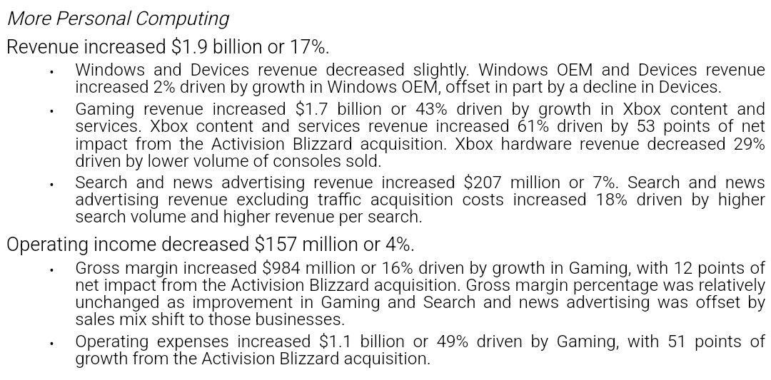 -Xbox内容和服务收入:约50.9亿美元,同比增长61%(其中53%的净收入来自动视)