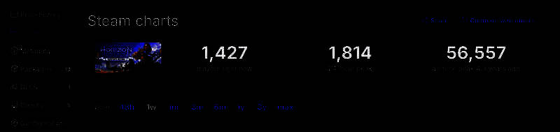 可能是第一款游戏的缘故,《地平线:零之曙光》当年在Steam上的首发表现可圈可点,Steam在线峰值5.6万人(56557),是现在重制版游戏的22倍还多。