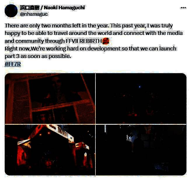 滨口直树近日在X上发文谈到了自己环游世界谈论和推广《最终幻想7:重生》的经历,并补充说道:“目前,我们正在努力开发以便尽快推出第三部分。”