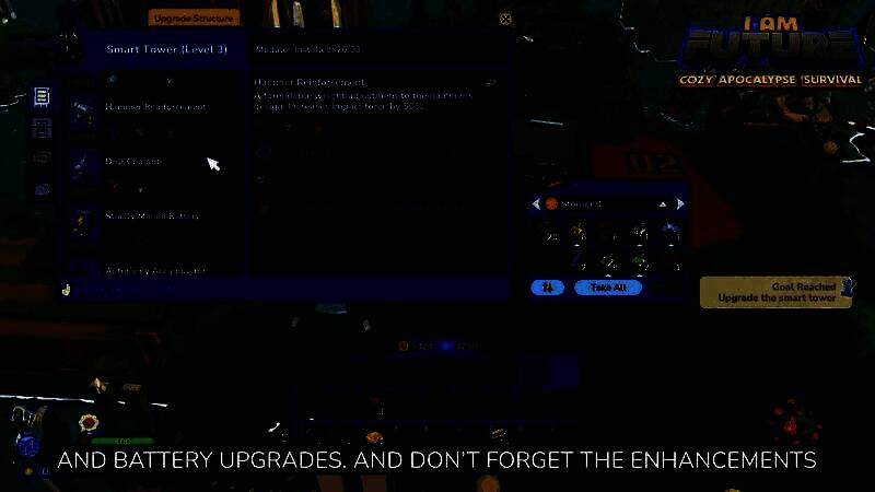 《我是未来》是一款轻松的单人生存游戏,游戏背景设定在被洪水淹没的后末日城市中,玩家需要建造一个舒适的屋顶营地。你可以建立农场、去钓鱼、修理小玩意、制作新工具、管理一队可爱的机器人来自动化和扩展你的基地、探索神秘的世界,以及放松身心!