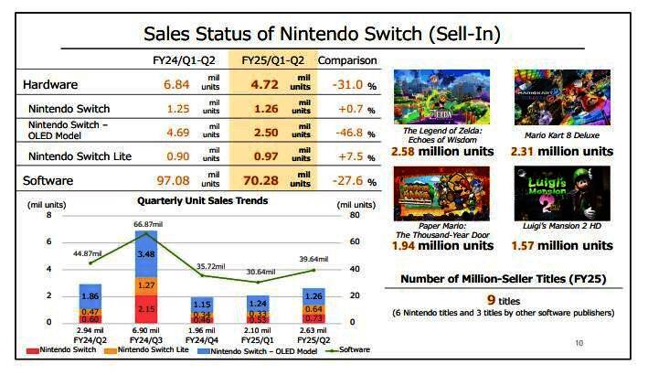 任天堂在财报还表示,虽然本财年上半年Switch硬件和软件销量均低于预期,但考虑到这已经Switch推出的第8个年头了,仍然有许多人在继续游玩Switch。接下来,任天堂将继续推广Switch的吸引力,吸引更多家庭中购买更多Switch,并不断发布新游戏以便更多消费者可以更长时间地游玩Switch。