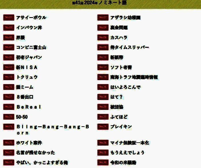 ·日本流行语大奖是每年评选过去一年中最具社会影响力的、各个领域的新词或旧语的奖项,代表了过去一年中国民议论最多的热点。