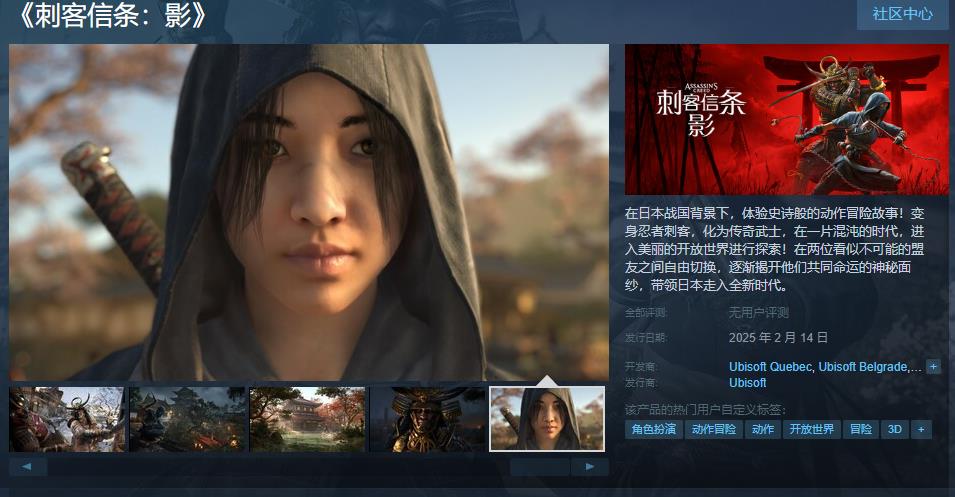 今日(11月21日),开发世界RPG《刺客信条:影》Steam页面公布,游戏支持简繁体中文,预计于2025年2月14日发售,感兴趣的玩家可以点击此处进入商店页面。