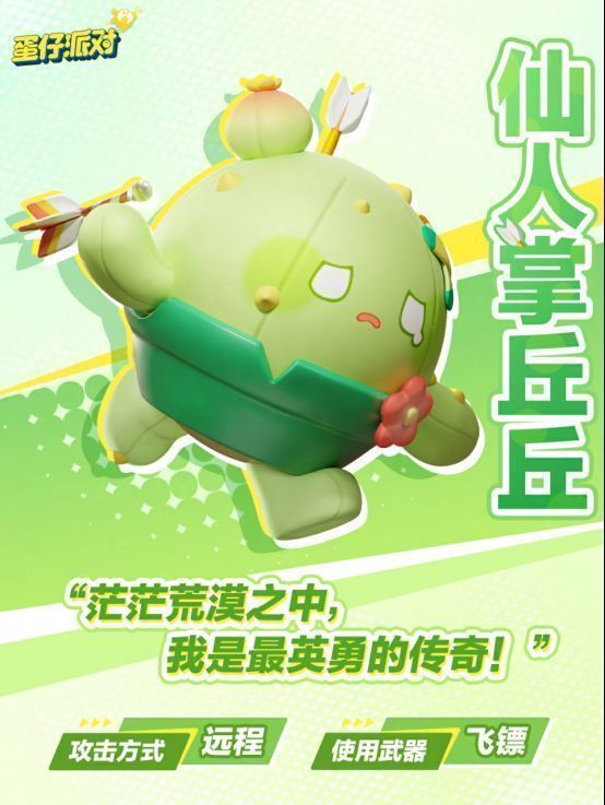 超燃蛋仔“仙人掌丘丘”专属卡牌同步上新,通过不同卡牌选择即可搭配多样战斗流派。如选择“翻滚飞刺”“逃跑丘丘”“滚滚丘丘”强化位移能力,即可在造成减防效果的同时施展风筝战术,通过灵活走位拉扯对手;又或者选择“飞旋之伤”“刺痛”,最大程度强化丘丘的飞镖伤害,以极致输出给敌人造成致命打击。