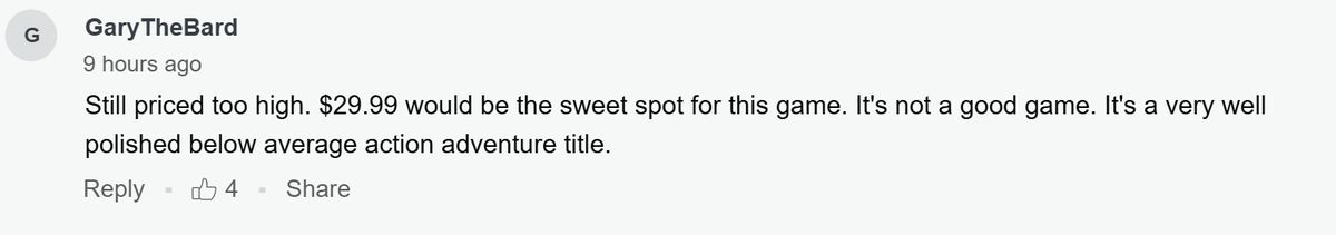 也有玩家表示,即便降价了,现在的价格还是太高了,《龙腾世纪:影障守护者》就值29.99美元。