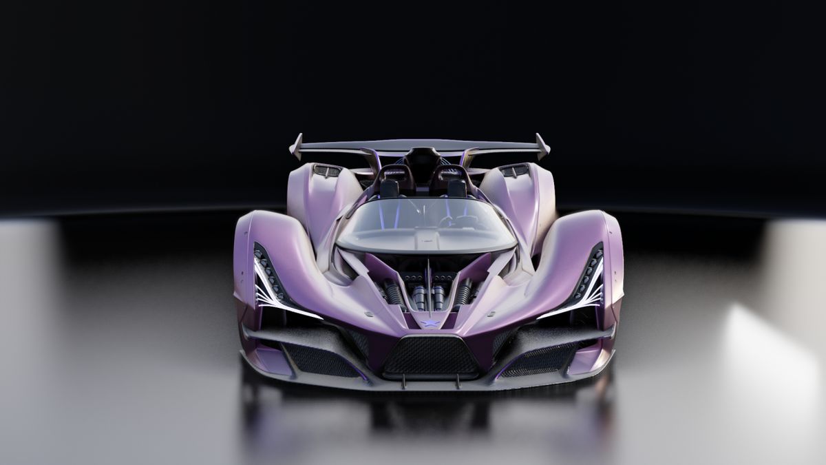 S21赛季首发的幻想阵营超跑,未来派的车身轮廓在光影交织中勾勒出超前科技的流线之美。充满神秘感的哑光幻紫车漆,宛若深邃的夜空中独自闪烁的紫薇星。车辆前脸被压的极低,由近乎贴地的前唇和镂空设计的进气口组成。妖娆的腰线设计,起到气流下压的作用,能让星穹幻音在赛道高速穿梭时更好地稳定车身。