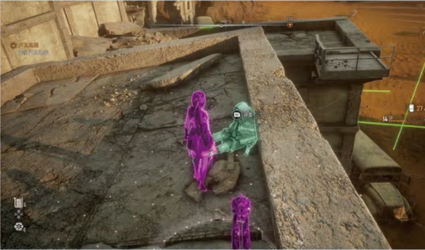 43、废墟外侧有敌人守卫,将其消灭后调查遗体,获得[记忆棒被孤立者的狂笑]。